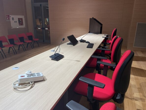 - Audio Professional & Acoustic Clarity: Per un'aula consiliare, la parola è tutto. Abbiamo progettato un impianto audio su misura, calibrato per neutralizzare i riverberi naturali della sala. Grazie a una diffusione sonora uniforme, ogni intervento viene veicolato con una fedeltà timbrica assoluta, assicurando che nessun dettaglio del dibattito vada perduto.